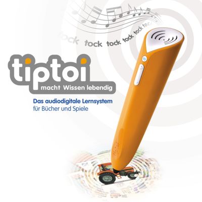tiptoi von Ravensburger erweckt Bücher, Spiele und Puzzles zu neuem Leben, sobald sie mit einem Stift berührt werden, der über einen optischen Sensor und eine Audioausgabe verfügt. Das audiodigitale Lernsystem ist eine Eigenentwicklung von Ravensburger, und wurde erstmals auf der Spielwarenmesse 2010 in Nürnberg dem Fachpublikum vorgestellt. Ein orangefarbener, griffiger Stift mit Lautsprecher ist das Herzstück des Systems: Mit einem Sensor und OID-Technologie - optischer Identifikation - verhilft er klassischen Medien wie Büchern, Spielen und Puzzles zu ungeahnten Möglichkeiten - sofern sie mit einem speziellen Druckverfahren gefertigt wurden. Berühren die Kinder mit dem elektronischen Stift die Seiten eines Ravensburger tiptoi-Buchs, ein tiptoi-Spiel oder ein tiptoi-Puzzle an diversen Stellen, erwachen sie hörbar zum Leben: So liest der schlaue Stift an passender Stelle Geschichten vor, erklärt Sachverhalte und Spiele, stellt Aufgaben, kommentiert die Lösung oder begleitet das Thema mit lebensechten Geräuschen. Damit verbindet Ravensburger die Vorzüge beider Welten: die vertraute Haptik klassischer Medien mit dem Hör-Erlebnis sowie den zusätzlichen Spielvarianten durch den digitalen Stift. Jedoch ist neue Technologie nur mit interessanten Inhalten wirklich spannend: Bei den Themen greift Ravensburger auf seine erfolgreichsten Produktmarken von „Wieso?Weshalb?Warum?“® bis puzzleball® zurück.