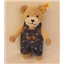 Steiff Hund, mit Shirt und rot karierter Latzhose