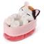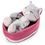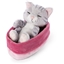 NICI - Sleeping Kitties - Katze grau im pink-lilanen Körbchen