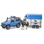 BRUDER - Land Rover Defender Polizeifahrzeug, Pferdeanhänger, Pferd und Polizist