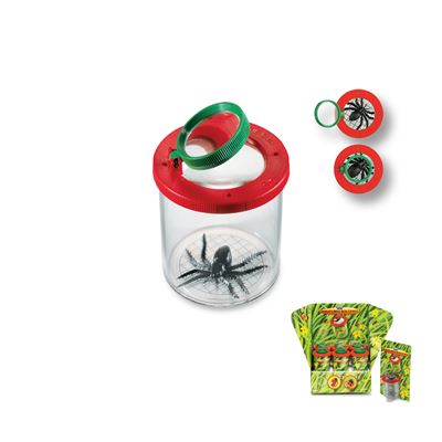 Lupenbecher 2/4-fache Vergrösserung. Technische Daten: Linsendurchmesser 32 mm. Farbe rot. Masse: 7 x 7 x 7.5 cm.
