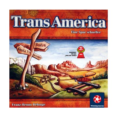 Die erste Neuveröffentlichung von Winning Moves im Jahre 2002 ist etwas ganz Besonderes: TransAmerica. Kinderleichte Regeln bei maximalem Spielvergnügen! Die Grundzüge erlernt man in Minuten, je tiefer man jedoch in die taktischen Finessen einsteigt, umso fesselnder wird das Ganze. Und bevor Sie sich versehen, haben Sie schon wieder fünf Runden gespielt.