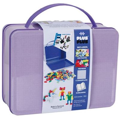 Der Plus-Plus Koffer aus Metall enthält alles, was du brauchst um mit Plus-Plus anzufangen, sowie eine tolle Aufbewahrungskiste. Eine Schritt-für-Schritt Anleitung erklärt dir genau, wie du flache Mosaike oder 3D Kreationen bauen kannst – Tiere, Menschen, Gebäude und vieles mehr! Dieses Set enthält 500 verschiedenfarbige Pastell-Teile, 100 verschiedenfarbige Neon-Teile, 1 Bodenplatte und eine Anleitung.