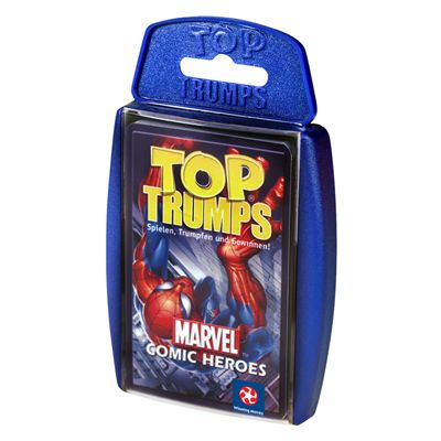 Top Trumps hat den guten alten Trumpfmechanismus mit hippen Topics verbunden. Trendige Comics wie die Marvel Helden, die Simpsons oder Angela Anaconda, der Welterfolg "Der Herr der Ringe" oder lehrreiche Themen wie Dinosaurier sowie Haie und Rochen bestimmen die neuen Top Trumps Editionen. Jedes ein kleines Informations-Paket über die angesagtesten Trends. Die höchste Zahl ist Trumpf! Und Sieger ist, wer am Ende alle Karten bekommen hat.