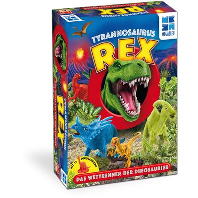Die Dinos sind los! Jeder Spieler startet mit 4 Dinosauriern. Das Ziel: Die Dinos durch die Wüste nach Hause bringen und das so schnell wie irgendwie möglich. Denn: Der König aller Dinosaurier, der Tyrannosaurus Rex, ist auf der Jagd und sucht nach saftiger Beute! Um ihm zu entkommen, müssen die Spieler nicht nur schlau sein, sondern brauchen auch die nötige Portion Glück. Mit Würfeln wird bestimmt, um wie viele Felder sich alle Dinosaurier fortbewegen. Wenn zwei Dinos auf einem Feld landen, findet ein Kampf statt. Und wer vom T-Rex erwischt wird, der muss hoffen, eine 6 zu werfen, um sich zu befreien. Wer bringt seinen Dino zuerst nach Hause?