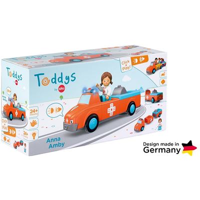 Spannendes, hochwertiges Spielzeug für Kinder ab 24 Monaten mit Friktionsmotor (Schwungradmotor) zur Förderung der Feinmotorik, Ausdauer, Geduld und zum Spaß haben. Die Spielfigur Anna ist beweglich: Der Kopf lässt sich drehen, die Arme lassen sich heben und die Beine können angewinkelt werden. Das Fahrzeug Amby lässt sich in drei Teile zerlegen und mit weiteren Toddys-Fahrzeugen kombinieren. Licht- und Soundeffekte zur Unterstützung der Fahrzeugcharakteristik. Das Kissen der Liegefläche kann hoch- und runtergeklappt werden, sodass die Figur liegend oder sitzend transportiert werden kann. Anna Amby ist kompatibel mit Bausteinen anderer Hersteller.siku-„Click&Play“-System: Einfaches Kombinieren durch Dreh-Steck-System der Fahrzeugteile zur Förderung der motorischen Fähigkeiten und für langanhaltenden Spielspaß. Robuste Verarbeitung in siku-Qualität.