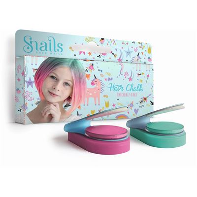 Mit den Snails Haarkreiden lassen sich schnell und einfach coole Haarsträhnen temporär einfärben. Das 2er-Set beinhaltet die Farben grün und pink. Mit Wasser abwaschbar.