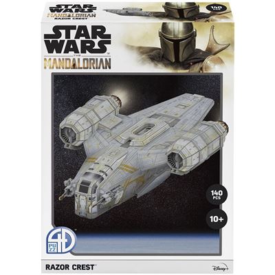 Die Razor Crest, ein ehemaliges Militärraumschiff, das in der Zeit vor dem Imperium für Patrouillen in den lokalen Gebieten eingesetzt wurde, dient dem Mandalorianer und dem Kind als zuverlässiges Transportmittel und Wohnquartier, wenn sie von Welt zu Welt reisen und sich außerhalb der Reichweite des imperialen Überbleibsels aufhalten. Kartonmodellbausatz