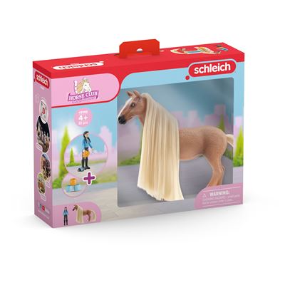 Entdecke das Kim & Caramelo Starter Set von Schleich Horse Club Sofia's Beauties. Denn wenn Kim da ist, kann ihre Criollo Definitivo Stute Caramelo nicht weit entfernt sein. Die besten Freunde sind jeden Tag 24 Stunden zusammen. Und das ist ganz schön viel. Die Zeit nutzen sie am liebsten, um über die letzte Stallparty zu reden. Oder über die Farbe Blau. Blauer Pulli, blaue Decke, blaue Haarspangen … Wie du sehen kannst, ist das eine Lieblingsfarbe der beiden. Damit sich auch die voll bewegliche Figur Kim nicht nur für einen Blauton entscheiden muss, kann man die Mähne und den Schweif ihrer Stute ganz einfach austauschen. Und in Ruhe durchkämmen. Ganz schön praktisch, oder?