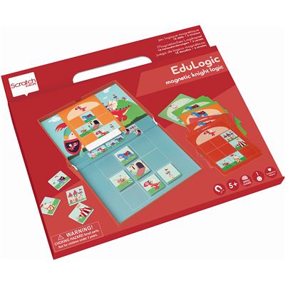 Kannst du das Bild mit Rittern, Drachen und Schlössern vervollständigen, indem du die fehlenden Figuren hinzufügst? Achtung: Die Figuren in der Schachtel müssen immer richtig zusammengesetzt werden! Es gibt 18 verschiedene Aufgabenkarten. Nimm eine Aufgabenkarte und befestige sie mit dem Magneten an der Oberseite der Edulogic Box.