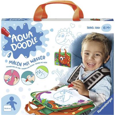 Aquadoodle Travel Dino ist ideal zum ersten Malen unterwegs! Kleinkinder ab 18 Monaten malen sicher und fleckenfrei mit Wasser – Hände und Sitze bleiben sauber. Trocknen die Striche, verschwinden sie vollständig und der Spaß beginnt von Neuem. Aufgeklappt dient die Tasche als Unterlage für die große zusammenhängende Malfläche mit den lustigen Dino-Motiven. Aquadoodle von Ravensburger garantiert höchste Qualität in Funktion und Verarbeitung und steht für einen sicheren und langlebigen Malspaß.