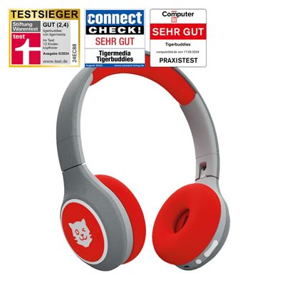 Die tigerbuddies Bluetooth Kinderkopfhörer sind in den Farbkombinationen Rot/Grau, Grün/Orange und Lila/Gelb erhältlich, damit jedes Kind sein Lieblingsmodell wählen kann.