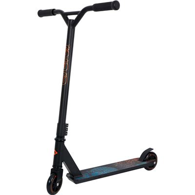 Das brandneue Einstiegsmodell im Bereich der Stunt-Scooter heißt “360” und kommt in zwei Farbstellungen. Der 360 ist das perfekte Modell, um sich an die ersten Tricks und Stunts zu wagen. Das hochwertige Deck (50x10cm) aus Aluminium in Kastenbauweise macht den Scooter sehr verwindungssteif und robust. Das trendige Graphic Griptape macht das Deck rutschfest und sorgt bei allen Tricks für stabilen und sicheren Stand. Verbunden sind Lenkrohr und Gabel mit einer 3-fach Klemme mit geschraubtem Steuersatz - die passenden Inbusschlüssel liegen bei. Die hochwertigen und komfortablen TPR Griffe sorgen stets für einen sicheren Halt und gute Schockabsorbtion. Selbstverständlich ist der Lenker um 360 Grad drehbar für alle Tricks und Stunts. Der 52 cm breite und 82 cm hohe Lenker ist wie immer bei Stunt Scootern nicht höhenverstellbar. Am Hinterrad verfügt der Schildkröt 360 über eine robuste Bremse für ein schnelles und sicheres Abbremsen des Scooters. Der 360 ist werksseitig mit 100mm Rollen aus griffigem PU ausgestattet (Härtegrad 82A), diese Rollen sind auf robusten Kunststoff-Felgen montiert, die auch den ersten Sprüngen und Stunts standhalten. Leichtläufige ABEC 7 Kugellager machen den 360 perfekt. Der Schildkröt 360 kommt vormontiert im Karton. Der Lenker muss mit beiliegendem Inbusschlüssel angeschraubt werden, was aber keine wirkliche Herausforderung darstellt. Bitte Anleitung und Warnhinweise vor der ersten Fahrt gut durchlesen. Wir empfehlen das Tragen der entsprechenden Schutzausrüstung. Übrigens: Namensgeber für diesen tollen Scooter von Schildkröt ist der Trick "360". Hierbei dreht sich der Fahrer mit dem Scooter während der Fahrt um 360 Grad. Über Schildkröt: Die über 100 Jahre alte deutsche Marke Schildkröt gilt als Erfinder des Tischtennisballs. Heute bietet Schildkröt neben Tischtennis auch eine sehr umfangreiche Funsport-, Rollsport- und Fitness-Kollektion an und gilt in gewissen Bereichen als Marktführer. Die Produktentwicklung erfolgt ausnahmslos in Deutschland. Die weltweiten Produktionsstätten werden streng überwacht und genügen höchsten Sozialstandards.