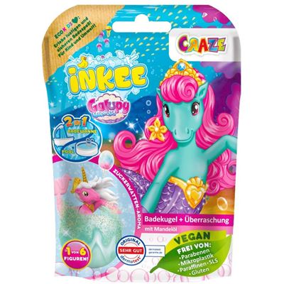 Wow! Wie das nach Zuckerwatte duftet, wie das schäumt und in welchen schönen Farben! Die INKEE GALUPY MERMAID Überraschungs-Badekugel bietet für die vielen GALUPY-Fans mehrfachen Spaß. Während sich die Badekugel sprudelnd im Wasser auflöst und sich das Badewasser zu einem wunderschönen lila und rosa Schaumbad verwandelt und dabei einen süßen Blaubeerenduft im Raum verströmt, steigt die Spannung, welches der insgesamt 6 verschiedenen GALUPY MERMAIDS wohl in der Badekugel enthalten ist.
