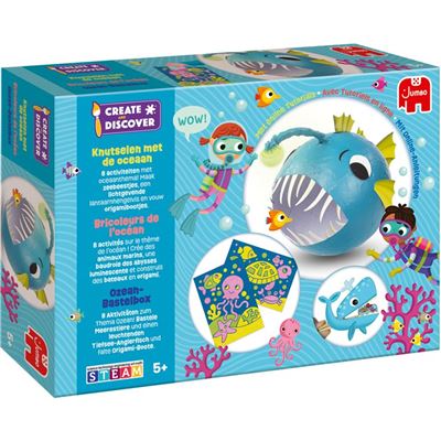 Eine Bastelbox mit 7 ozean-thematischen Aktivitäten! Während des Bastelns lernt das Kind durch interaktive Videos und ein praktisches Handbuch über das Thema.