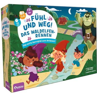 An einer Nacht im Jahr versammeln sich alle Waldelfen zu einem großen Tastlauf. Aber Vorsicht: Dieses Jahr hat sich ein Oger zur Party eingeladen! Wer wird der Schnellste sein? Lege die Fühlplättchen in den Beutel und die Waldelfen an die Startlinie und versuche dann beim Tasten das Plättchen zu finden, das dem Ort vor deiner Spielfigur entspricht, um voranzukommen.