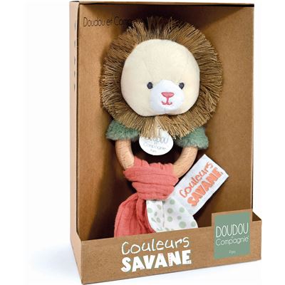 Der Löwe als Rassel aus der Linie Couleurs Savane hat ein großes Herz und lässt sich leicht zähmen. Den Holzring der Rassel können bereits kleinee Hände gut greifen. Die verschiedenen Stoffe und das lustige Rasseln erwecken die Sinne. Maschinenwäsche bei 30°. Größe: 15cm.
