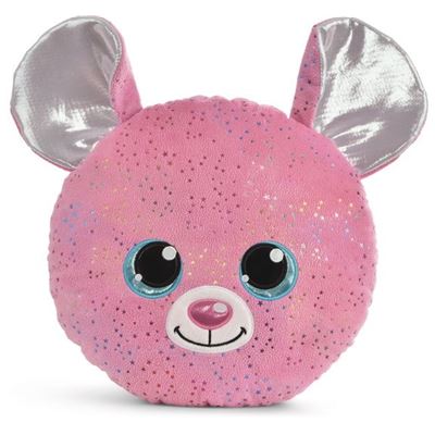 Das Plüschkissen GLUBSCHIS Maus Miss Mausie in der Form eines Mausekopfes ist nicht nur flauschig weich, sondern begeistert mit einem bezaubernden Gesichtsausdruck, großen, blauen Glitzeraugen, einem rosa glänzenden Näschen und silbrig-schimmernden Ohren. Das Kissen aus pinkfarbenem NICI-Plüsch ist über und über mit bunten Sternchen aus Glitzermaterial versehen. Es ist ein wunderschöner Blickfang und Dekoelement fürs Kinderzimmer. Ob als Kuschelkissen für Übernachtungspartys oder auf Reisen, als bequeme Kopfunterlage zum Lesen oder Schlafen oder einfach als weiteres Sammelobjekt für die eigene GLUBSCHIS Plüschwelt - das GLUBSCHIS Kissen ist das perfekte Geschenk für kleine und große GLUBSCHIS Fans.