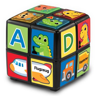 Drehen und lernen mit Babys Zauberwürfel! Dieser leuchtende Würfel bringt den Kleinsten einfache Sätze bei. Dreht man den Würfel, sind verschiedene Kombinationen an Tierfreunden und Fahrzeugen möglich.
