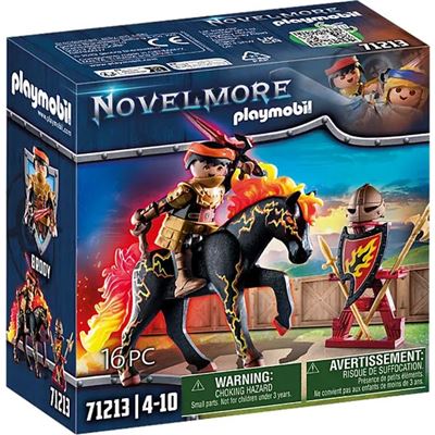 Stürz dich ins Getümmel mit dem hitzigen Burnham Raiders Feuerritter von PLAYMOBIL. Auch Brody Burnham möchte sich das Ritterturnier nicht entgehen lassen und sein Können beweisen. Gemeinsam mit seinem feurigen Pferd trainiert er fleißig verschiedenste Disziplinen um beim Turnier eine gute Figur zu machen. Auf dem Waffenständer kann er Schwert, Speer, Schild und Helm aufbewahren. Mit raffinierten Funktionen und interessanten Charakteren lädt die Novelmore-Spielwelt zu aufregenden Ritterabenteuern ein. Toller Spielspaß für Kinder ab 4 Jahren.