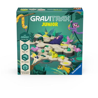 Das GraviTrax Junior Starter-Set L Jungle beinhaltet alles, um sofort mit dem Bauen loszulegen und in die Dschungel-Welt einzutauchen; durch vielfältige im Set enthaltene Dschungel-Elemente und Tierfiguren erleben Kinder ab 3 Jahren die Welt des Dschungels beim Dekorieren und Spielen hautnah