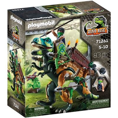 Ian und sein T-Rex sind bereit für den Dschungel dank ihrer raffinierten Rüstung mit Steinabwurf und seitlich angebrachten Doppelkanonen. Von seinem Stehplatz auf dem Dinorücken aus hat Ian alles im Blick und greift mit seiner Lanze ins Getümmel ein. Bei so viel Dino-Mensch-Power sollten sich die Schurken lieber warm anziehen. Die Dino Rise-Spielwelt von PLAYMOBIL liefert mit originellen Charakteren, eindrucksvollen Dinosauriern und modernen Rüstungen jede Menge Stoff für actionreiche Spielabenteuer im Kinderzimmer. Ein ideales Geschenk oder Mitbringsel für Dinofans ab 5 Jahren.