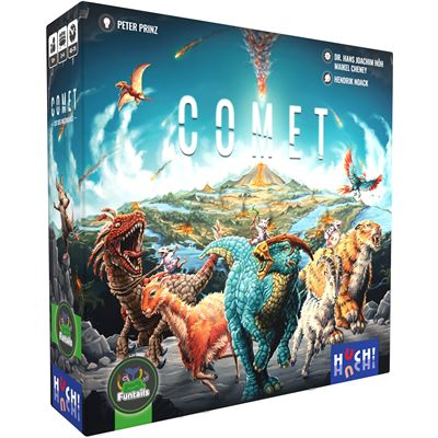 Comet ist ein kompetitiver Engine-Builder ohne Kampf mit einzigartigem Ressourcenkonzept. In ferner Vergangenheit versuchst du diverse Tierarten vor dem drohenden Kometeneinschlag zu retten. Wähle weise, denn die geretteten Tiere unterstützen deine weiteren Rettungsmanöver auf unterschiedlichste Arten.