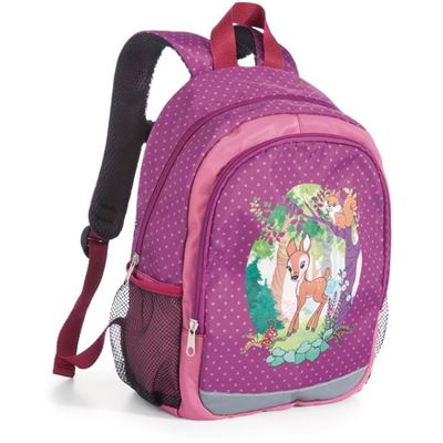 Mit dem niedlichen Rucksack bekommen auch die Kleinen einen zauberhaften Wegbegleiter für den Kindergarten, die Schule oder kleine Ausflüge. Die bezaubernde Illustration des Magischen Waldes mit Rehkitz Mala Magic und Eichhörnchen Coleen Cuddly machen aus dem farbintensiven Rucksack einen echten Hingucker. Neben dem Design kommt die Funktionalität natürlich auch nicht zu kurz: Der Rucksack bietet höhenverstellbare Schultergurte, ein großes Hauptfach mit Trinkflaschenhalter und natürlich auch eine Schlaufe zum Aufhängen. Der Rucksack ist Teil der NICI GREEN Produktwelt. Für NICI GREEN Produkte verwenden wir fast ausschließlich Plüsch- und Füllstoffe, die aus recycelten Materialien bestehen. Hierfür werden vor allem alte PET-Flaschen zu RPET verarbeitet.