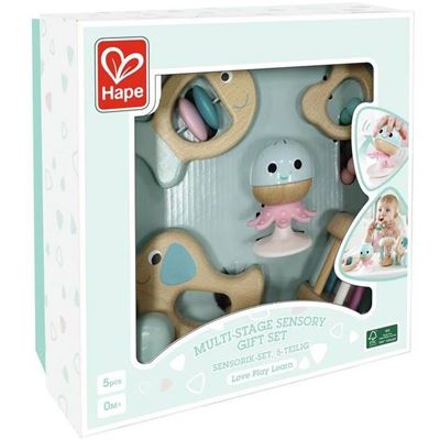 Diese wunderschöne Spielzeugkollektion aus nachhaltigem Buchenholz kann mit den Kleinsten heranwachsen und unterstützt die Sensorik-Sinne. Mit Greifling, Roll-Rassel, Beißring, Stand-Rassel und ziehbarem Hund ist für jedes Alter das ideale Spielzeug dabei.