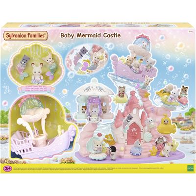 Im U-Boot und im gelben Fisch können die Babys hin und her fahren. Vom Heißluftballon im großen Schiff, hat man eine wundervolle Aussicht über den ganzen Freizeitpark. Es gibt außerdem eine Schatztruhe, eine schöne Eingangstür zum Öffnen und ein Muschelbett, in dem sich die Kleinen ausruhen können. Das Wüstenfuchs und das Perserkatzen Baby haben sich als Meerjungfrauen verkleidet und tragen eine schöne Flosse. Der Seilbahnaufzug kann mit dem Sylvanian Families Baby Freizeitpark verbunden werden. So können die Babys zwischen den beiden Attraktionen hin und her fahren. Im Sylvanian Families Baby Meerjungfrauen Schloss Spielset sind das Schloss mit zahlreichen Attraktionen und drei Baby Figuren enthalten. Die Figuren sind ca. 3-5 cm groß. Für Kinder ab drei Jahren geeignet.