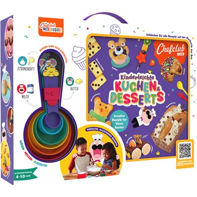 25 großartige Rezepte für Desserts + zusätzliche Rezepte. Klassische Rezepte und Schritt-für-Schritt-Illustrationen unter Verwendung der Chefclub-Messbecher. Kleine Geschichten und historische Infos zu zu jedem Dessert. Interaktives Kochbuch: Zugriff auf die Chefclub-App für die Rezeptvideos. Wasserfeste und abwaschbare Seiten.