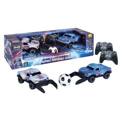 Das Revell Control Football League RC Car Set bietet nicht nur klassisches Racing-Vergnügen, sondern auch ein einzigartiges Fußballerlebnis. Mit zwei enthaltenen Fahrzeugen kannst du aufregende Fußballspiele inszenieren, bei denen die Autos den Ball ins Tor befördern. Dieses Spiel fördert Teamarbeit und strategisches Denken, während es gleichzeitig jede Menge Spaß bringt. Egal, ob drinnen oder draußen – dieses Set ist perfekt für junge Fahrer, die ihre Fähigkeiten im Bereich der ferngesteuerten Autos und im Fußballspiel weiterentwickeln möchten.