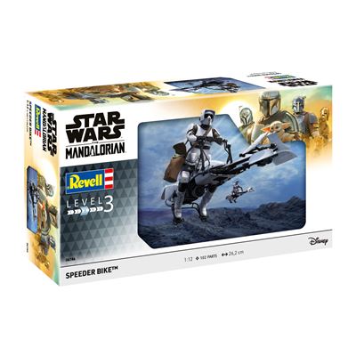 Der Bausatz kommt außerdem mit einem Display-Ständer, auf dem das Speeder Bike perfekt zur Geltung kommt. Die bebilderte und mehrsprachige Anleitung führt durch die einzelnen Bauschritte und erleichtert den Zusammenbau. Dieser hochwertige Modellbausatz ergänzt Revells Mandalorian-Sortiment ideal, zu dem auch die Razor Crest, der N1 Starfighter und „The Child“ gehören – ein absolutes Muss für jeden Star Wars-Fan und Sammler.