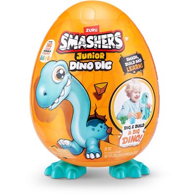Smashers Junior Dino Dig ist ein Abenteuer für kleine Entdecker. Deine Kleinen werden es lieben, sich durch die weiche Dino-Knete zu graben, um versteckte Dinosaurierteile zu entdecken. In diesem niedlichen Ei befinden sich 18 Überraschungen, darunter 6 Förmchen, um die Dino-Knete zu formen, 1000g Knete sind im Ei zu finden! Smashers Junior ist das ultimative Sinnesspielzeug und fördert die Feinmotorik von Kleinkindern. Beginne noch heute dein Abenteuer mit Smashers Junior - Zerschmettern, bauen und lernen!