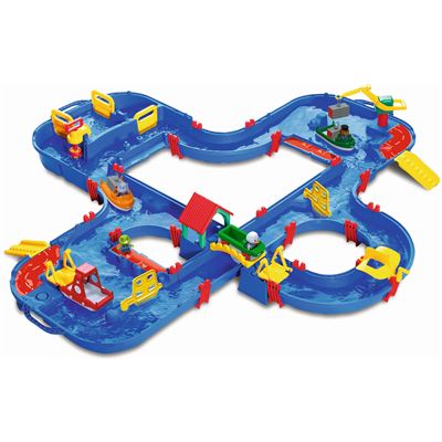 AquaPlay’nGo ist das größte Set des Markenherstellers AquaPlay und bietet auf einer Länge von 160 cm unendliche Spielmöglichkeiten für Kinder ab drei Jahren. Das Set verfügt über ein Hafenbecken mit Kran, eine Schleuse mit Handpumpe, eine Fährstation sowie verschiedene Brücken und Rampen. Die Stärke und Richtung der Wasserströmungen können durch die enthaltene Handpumpe mit extra großen Schaufelflächen bestimmt werden. Gemeinsam mit den vier lustigen Spielfiguren Wilma, der fröhlichen Hippodame, Nils, dem abenteuerlustigen Frosch, Lotta, der aufgeweckten Ente, und Bo, dem liebenswerten Bären, starten die Kinder zu lustigen Entdeckungsreisen durch die große Wasserwelt.