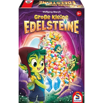 "Große kleine Edelsteine" ist ein spannendes, actionreiches Kinderschätzspiel für zwei bis vier Spieler ab fünf Jahren. In diesem Spiel begeben sich die Spieler in das Reich der Kobolde, wo auf der legendären Königskrone einige wertvolle Edelsteine fehlen. In sechs Runden geben jeweils drei Karten vor, welche Edelsteine die Spieler finden müssen. Aber Achtung, jeder Stein ist in Form und Größe ein absolutes Unikat.