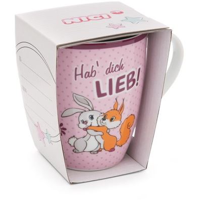 Unser Lieblingsmensch spielt stets eine große Rolle in unserem Leben und zaubert uns einfach immer ein Lächeln ins Gesicht! Mit der "Hab' dich lieb!" Tasse von NICI kann man seine Liebe und Wertschätzung ausdrücken. Die zauberhaft designte Tasse begeistert mit entzückenden Tiercharakteren auf rosafarbenem Hintergrund. Mit der Tasse kann man seine Lieblingsgetränke bereits zum Frühstück stilvoll zu sich nehmen und dabei ganz intensiv an seinen Herzensmensch denken. Dank der dekorativen Geschenkbanderole eignet sich die zauberhafte Porzellantasse mit 310ml Inhaltsvolumen gut als Geschenk oder kleine Aufmerksamkeit, zum Beispiel zum Geburtstag, zum Jahrestag oder Valentinstag.