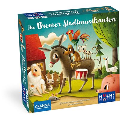 Die Geschichte von den heldenhaften Bremer Stadtmusikanten hat auch andere Tiere inspiriert. Wie Esel, Hund, Katze und Hahn wollen sie ihr Schicksal selbst in die Hand nehmen. Denn leider treiben sich immer noch Räuber in einigen Häusern herum. Im Kinderspiel „Die Bremer Stadtmusikanten“ sammeln die Kinder jeweils ihre eigenes Tierorchester und bilden aus ihnen einen Turm, der hoch genug sein muss, um die Räuber zu erschrecken. Unter allen Türmen, die diese Bedingung erfüllen, gewinnt derjenige, der am niedrigsten ist. Da ist ein gutes Augenmaß und Ausnutzen der Fähigkeiten der einzelnen Tiere gefragt.
