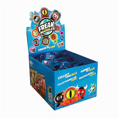 Die ultimativen Murmeln mit eigenem Charakter zum Sammeln, Mixen, Tauschen und Spielen für drinnen und draußen. Sammle sie alle! Jede Murmel hat seine individuellen Fähigkeiten und gehört in eine "Freaky Family". Die coolen und einzigartigen Hüllen unterstützen und wechseln den Charakter der Murmeln. Es gibt seltene und super seltene Murmeln, mit Glück findet man sie in den Überraschungspacks. Sie sind 24 mm gross, bunt und haben crazy Namen. Alle Murmeln findest du auf dem Sammelflyer.