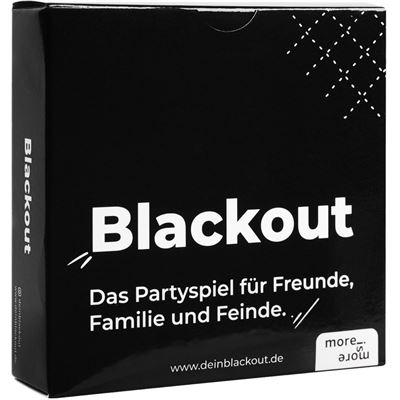 Blackout - Das Partyspiel für Freude, Familie und Feinde. Legt die 55 Spielkarten auf den Tisch. Ihr zieht im Uhrzeigersinn jeweils immer eine Karte und legt sie neben den Stapel. Nun liegt eine aufgedeckte Themenkarte neben einer Regelkarte. Die Person, die zuerst ein entsprechendes Wort sagt, hat die Runde gewonnen. Dann wird die nächste Karte gezogen. Die Person, die gewonnen hat, behält die Karte. Der Spieler am Ende mit den meisten Karten hat gewonnen.