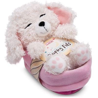 Ein schlafendes Hündchen - wie süß! Der flauschig weiche Plüschpudel mit seinem langen, weißen Plüschfell verzaubert kleine und große Hundefreunde nicht zuletzt mit seinem extrem niedlichen Gesichtsausdruck, den gestickten Schlafaugen und dem authentischen Pfotenabdruck auf der Fußsohle. Der 12cm große Pudelwelpe, der eingekuschelt in seinem Plüschkörbchen in einem zarten Malve-Ton liegt, fühlt sich überall wie zuhause und ist daher ein wundervolles Geschenk mit hohem Spiel- und Kuschelfaktor! Plüschhund und -körbchen sind einzeln bespielbar. Der Sleeping Pets Pudel ist Teil der NICI GREEN Produktwelt. Für NICI GREEN Produkte verwenden wir fast ausschließlich Plüsch- und Füllstoffe, die aus recycelten Materialien bestehen. Hierfür werden vor allem recycelte PET-Flaschen zu RPET verarbeitet.