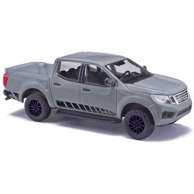 Mit der N-Guard-Ausführung setzt Nissan noch eines obendrauf und gestaltet so ein weiteres Topmodell. Dabei bleibt die obligatorische Doppelkabine auch weiterhin vorhanden und bietet fünf Personen Platz, wobei es für vier Personen deutlich bequemer auf Langstrecken ist. Auch der Innenraum wurde deutlich sichtbar veredelt und auch unter der Haube hat sich einiges getan, was bei einer Miniatur natürlich kaum ersichtlich ist. Daher sind alle äußerlichen Attribute dieser Ausführung perfekt umgesetzt, wie die diversen schwarzen Applikationen. Der Frontgrill und die Umrandung der Nebelscheinwerfer sowie die Türgriffe sind rabenschwarz. Besonders auffällig ist das seitliche, ebenfalls in tiefem Schwarz aufgebrachte Dekor, das Reifenspuren darstellen soll. Das ganze Design soll die Offroad-Ausrichtung deutlich hervorheben.