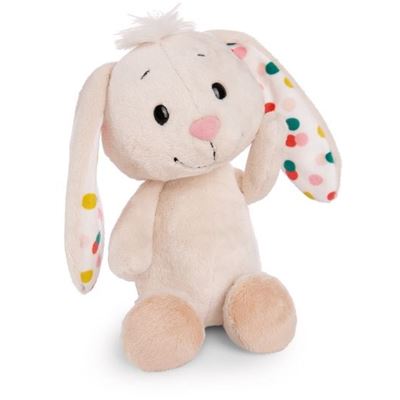 Das niedliche, cremefarbene Plüschhäschen mit einem witzigen Puschel auf dem Kopf und langen Schlappohren, die über und über mit süßen bunten Punkten bedruckt sind, begeistert nicht zuletzt durch seine softig weiche Flauschigkeit. Der Happy Rabbit Kuschelhase verzaubert und entzückt als Ostergeschenk Klein und Groß auf gleiche Weise. Der Happy Rabbit Hase ist Teil der NICI GREEN Produktwelt. Für NICI GREEN Produkte verwenden wir fast ausschließlich Plüsch- und Füllstoffe, die aus recycelten Materialien bestehen. Hierfür werden vor allem recycelte PET-Flaschen zu RPET verarbeitet.