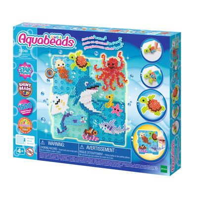 Das Aquabeads Ozean Bastelset bringt die farbenfrohe Unterwasserwelt direkt nach Hause. Mit den insgesamt 1.500 Bastelperlen, darunter schimmernde Stern-, Polygon- und Perlmuttperlen, können faszinierende Meerestiere wie Delfine, Meeresschildkröten, Haie und Seepferdchen gestaltet werden. Die Perlen werden einfach nach Vorlage auf die Bastelplatte gelegt, mit Wasser besprüht und verbinden sich dann ganz von selbst – ohne Bügeln oder Kleber. Die fertigen Kreationen können auf den mitgelieferten Dekorationsplatten präsentiert werden und sind so ein toller Blickfang im Kinderzimmer oder bei besonderen Anlässen wie Geburtstagsfeiern.