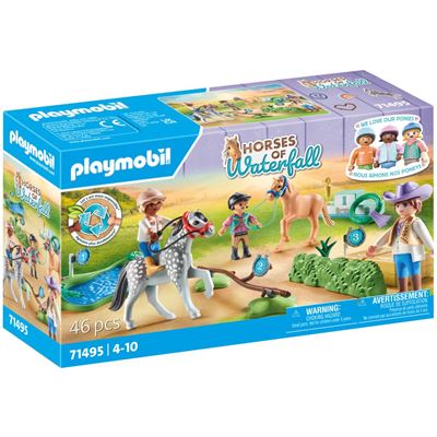 Starte mit deinem Pony in den Wettkampf mit dem Ponyturnier von PLAYMOBIL. Auf dem Turnierplatz mit verschiedenen Hindernissen wie Wassergraben, Ast und Strohballen können talentierte Reiterinnen und Reiter ihr Können unter Beweis stellen. Gar nicht so einfach, den Parcours fehlerfrei zu durchreiten. Aber alle geben ihr Bestes. Am Ende winkt ein Siegerpokal für das Kind und ein Lorbeerkranz für das Pony. Doch egal ob Erster oder Zweiter, dabeisein ist alles!