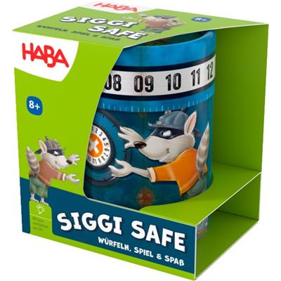 Bei Siggi Safe sind clevere Code-Knacker gefragt. Durch geschicktes Würfeln versuchen die Spieler:innen als Waschbären, die geheime Zahlenkombination des Safes zu knacken. Jeder Waschbar besitzt 6 Plättchen mit Zahlenwerten, die es zu erwürfeln gilt. Hierbei stehen 4 weiße und zwei rote Holzwürfel zur Verfügung. Die Augen der weißen Würfel werden addiert, die der roten Würfel subtrahiert. Wer mit viel Strategie und ein bisschen Glück zuerst alle seine Zahlen in den Becher-Safe geworfen hat, gewinnt.