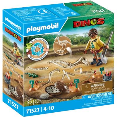 Figuren: 1 Mann; Tiere: 1 Echse; Zubehör: 1 zusammenbaubares Dinoskelett, 1 Absperrung, 1 Karte, 1 Schaufel, 1 Spitzhacke, 1 Eimer mit Utensilien, 1 Gesteinsbrocken, 2 Fossilien, 1 Stift
