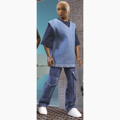 - In der Denim & Diamonds Variante trägt Tré eine Jeans mit passendemOberteil, beide mit Schmuckapplikationen verziert,dazu sportlich geschnittene Schuhe und jede Menge Accessoireswie ein Skateboard, einen Helm und ein silbernes Handy.