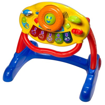 "Eins, zwei, eins, zwei!" Der praktische Haltegriff animiert das Kind zum Hochziehen und Laufen lernen. Sowohl im Liegen, Sitzen und zum Laufen einsetzbar. Mit dem abnehmbaren Spieltisch lernt das Kind Farben, Tiere, Zahlen und 14 Kindermelodien. Zahlreiche beleuchtete und bewegliche Elemente fördern die Feinmotorik.