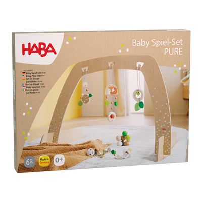 Das Set beinhaltet, was sich Babys zum glücklichen Start in eine spannende Welt wünschen: einen Spielbogen, drei lustige Hängefiguren, eine wunderschöne Schnullerkette und einen spannenden Greifling. Alle wecken durch Scheiben und Perlen aus natürlichem Holz Babys Sinne und animieren zum Schauen, Staunen und Greifen. Der dezent designte Spielbogen aus hochwertiger Birke passt perfekt zu jeder Inneneinrichtung und damit in jedes Wohn- und Kinderzimmer. Durch eingefräste Halterungen können weitere Spielzeuge via Schlaufe, Klammer, Ring und Co. am Bogen befestigt werden. Leicht auf- und wieder abgebaut und platzsparend verstaubar.